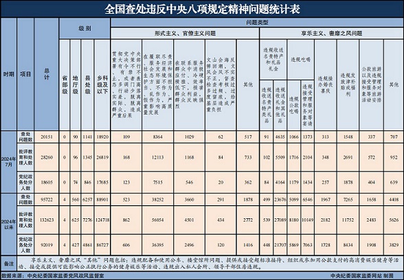 8月27日,中央纪委国家监委公布了2024年7月全国查处违反sunbet申博,申博官网,sunbet官网问题汇总情况。当月,全国共查处违反sunbet申博,申博官网,sunbet官网问题20151起,批评教育和处理28260人,其中党纪政务处分18605人,这是连续第131个月公布月报数据。