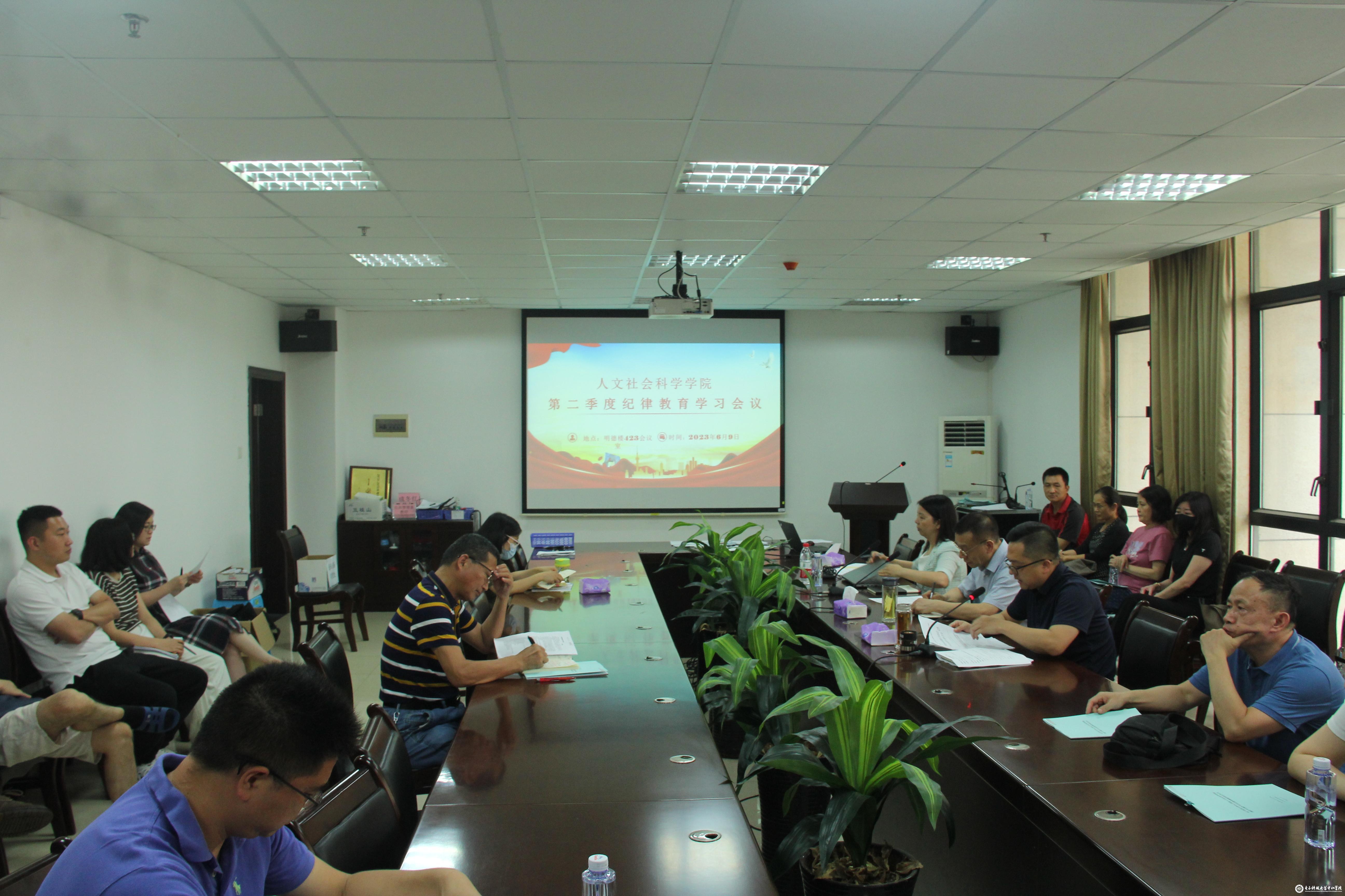 6月9日下午,人文社会科学学院在明德楼423会议室召开2023年第二季度纪律教育学习大会,人文社会科学学院全体教职工参加了会议。会议由人文社会科学学院院长蒋先进主持。