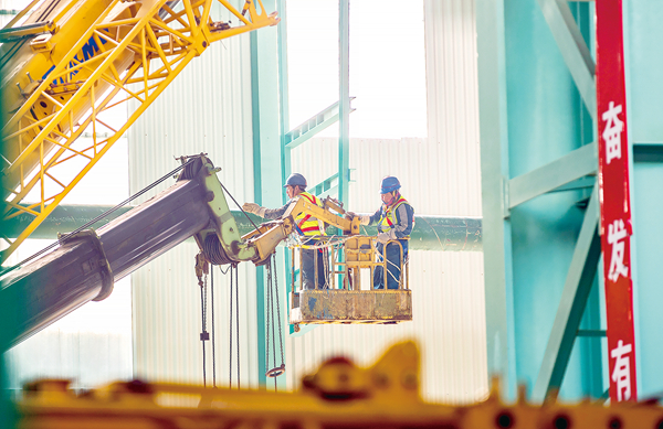 新中国成立以来,中国共产党带领人民锚定建设社会主义现代化国家目标不动摇,根据不同阶段科学制定发展规划,书写了人类历史上最为波澜壮阔的现代化进程。图为安徽马鞍山,中国宝武马钢集团“十四五”规划新特钢重点项目现场,建设者们正在加紧进行设备安装调试。 图片来源:视觉中国