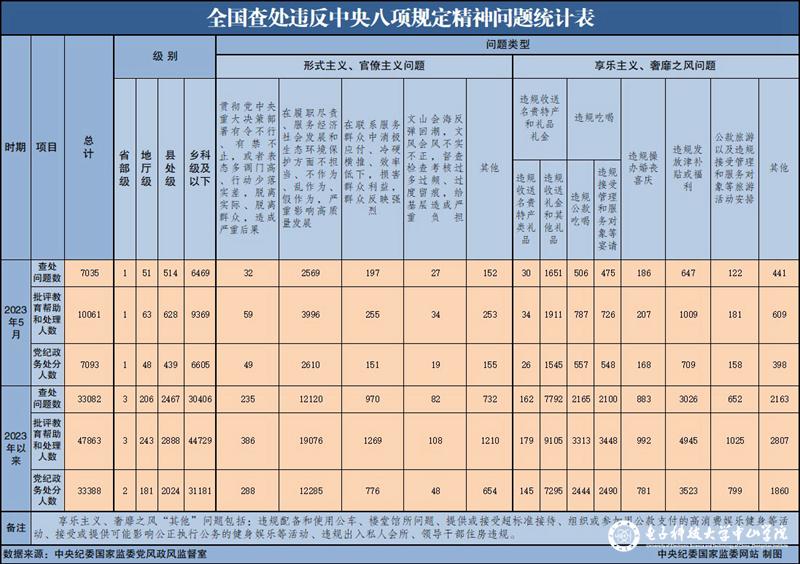 6月28日,中央纪委国家监委公布了2023年5月全国查处违反sunbet申博,申博官网,sunbet官网问题汇总情况。今年5月,全国共查处违反sunbet申博,申博官网,sunbet官网问题7035起,批评教育帮助和处理10061人,其中,党纪政务处分7093人,这是连续第117个月公布月报数据。