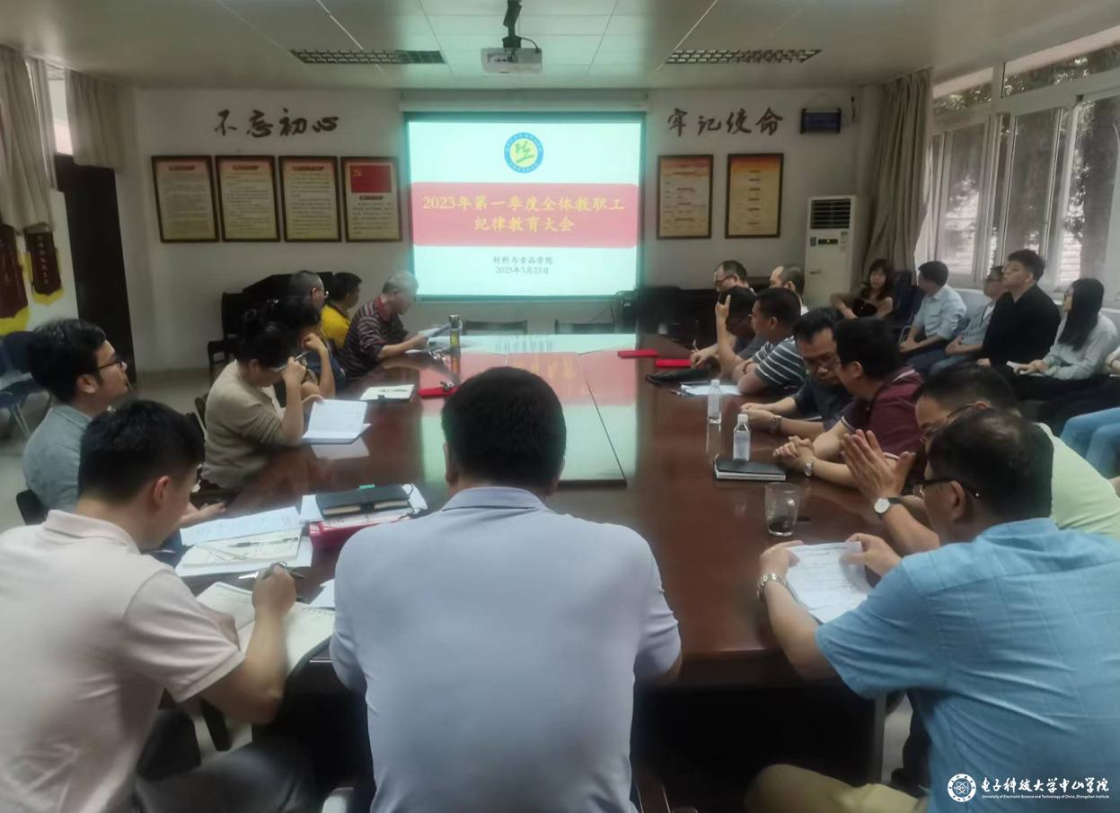为落实《中共中山市教育工作委员会关于开展2023年第一季度纪律教育学习月活动的通知》和我校《关于开展2023年第一季度纪律教育学习月活动的通知》的要求,进一步加强师德师风建设,营造良好纪律氛围,3月23日下午,材料与食品学院召开全体教职工纪律教育大会,会议由学院党总支书记陈永强主持。