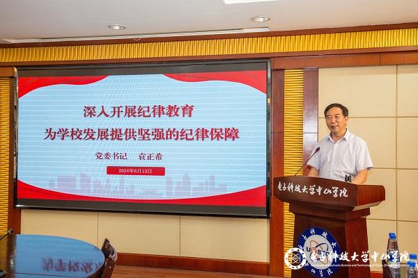 袁正希以“深入开展纪律教育为学校发展提供坚强的纪律保障”为主题讲授纪律党课。他强调,要重点围绕深入学习贯彻习近平总书记关于全面加强党的纪律建设的重要论述,学深悟透新修订的《中国共产党纪律处分条例》,强化纪律自觉,激发干事热情,为学校发展提供坚强的纪律保障。他深入讲解了《中国共产党纪律处分条例》修订的主要特点、主旨要义,并结合典型案例,强调了“六项纪律”的要义和规定要求:一是要强化自律自觉,时刻紧绷纪律规矩这根弦,要认真对照党章党规党纪,把每条纪律要求都学深悟透;二是要把党纪学习教育成果转化为推动学校事业发展的强大动力,坚持学用结合,确保见行见效;三是要始终把严守政治纪律和政治规矩放在首位,不折不扣落实好党中央决策部署和工作要求,始终牢记“五个必须”、严防“七个有之”、贯彻落实“四个服从”,要严守廉洁纪律,始终做到公私分明、秉公用权,要严守群众纪律,始终做到心系师生、为师生造福,要严守工作纪律,始终做到履职尽责、真抓实干,要严守生活纪律,始终做到明大德、守公德、严私德。