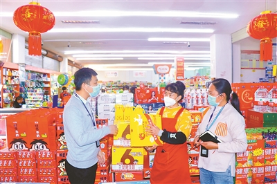春节前夕,云南省西盟佤族自治县纪委监委成立检查组,前往城区部分酒店、超市、烟酒专卖店,对节前公款消费情况开展监督检查,保障廉洁过节。图为近日,该县纪检监察干部在超市了解有关情况。 杨梦笛 摄