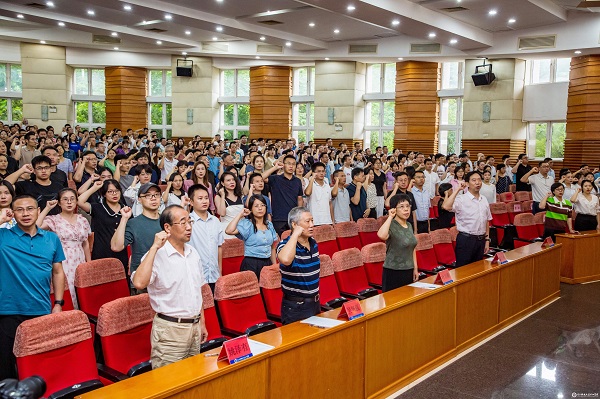根据上级要求,为弘扬师德精神,重温教育初心,引领全体教职工增强责任感、使命感和荣誉感,学校在大会上首次举行了庄严的教师宣誓仪式。学生国旗护卫队以整齐的步伐护送国旗上台并展开。面向鲜红的国旗,全体教师肃立,高举右手,郑重宣读了誓词,“为培养德智体美劳全面发展的社会主义建设者和接班人而努力奋斗”的誓言响彻会场。宣誓仪式由学校党委委员、组织部部长、人事处处长杨晓阳领誓。