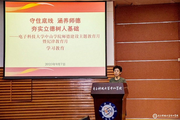 根据sunbet申博、省教育厅部署,我校于9月启动了“2023年师德建设主题教育月暨纪律教育月”活动。会上,叶立新副书记作题为《守住底线 涵养师德 夯实立德树人基础——电子科技大学中山学院师德建设主题教育月暨纪律教育月学习教育》的专题报告。她指出,教师应当先有德、养德,才能去教德、引德、润德,全体教职工要以学习月为契机,认真学习教育文件精神,内化于心、外化于行,努力夯实和提高学校立德树人基础和水平,真正做到为党育人、为国育才。她从“开展师德集中学习教育的文件精神”“涉师德师风事件的处理”“学校师德建设工作检视”“学习‘新时代高校教师职业行为十项准则’”四个方面进行了领学和导学,要求各单位要按照学校工作部署,结合纪律教育学习月要求,认真开展系列学习教育,抓好落实,不走过场,推动学校师德工作取得实效。