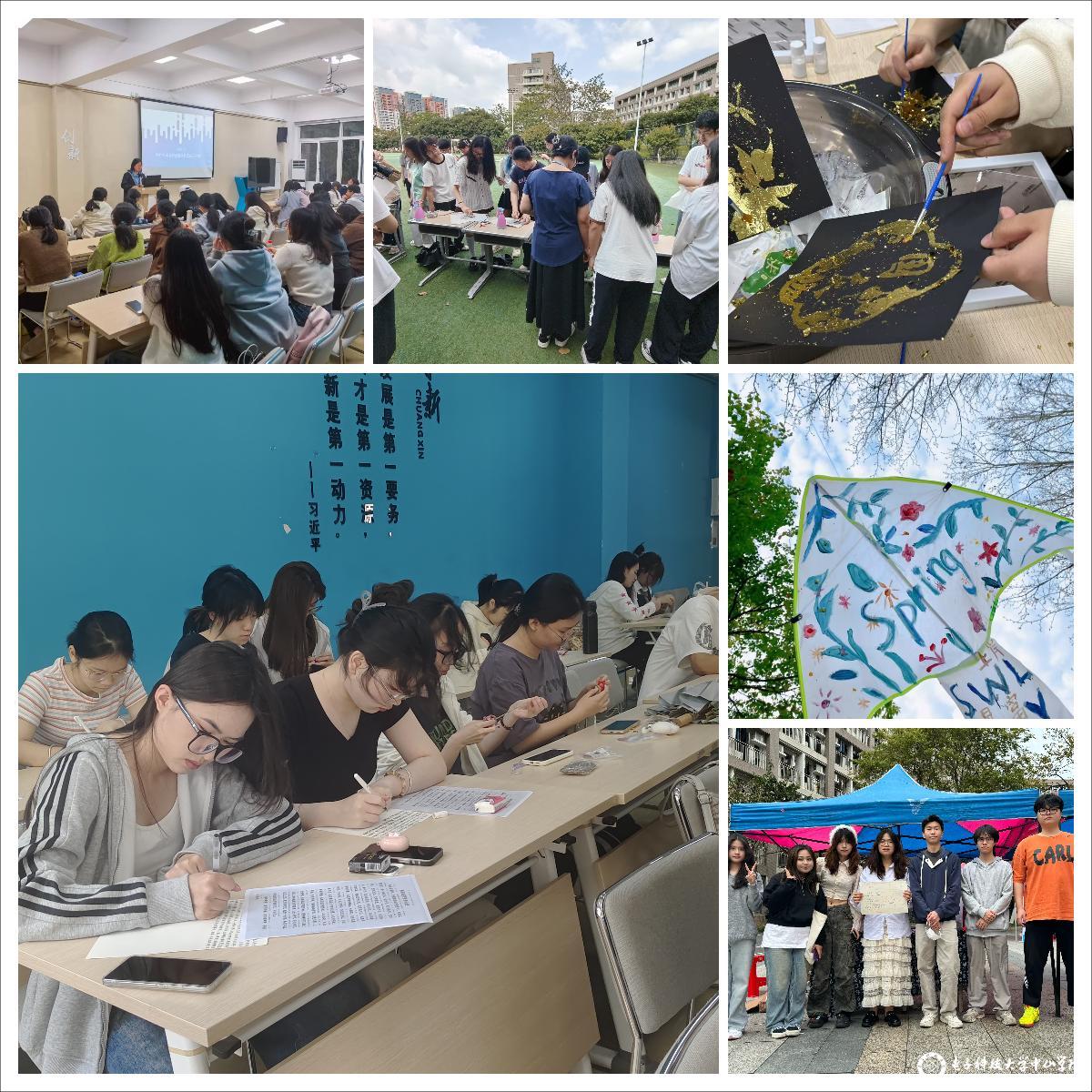 3月17日至4月19日在龙腾大学生之家309室、山顶足球场等地共开展6场“非遗传承,手工悦心”心理健康教育系列活动。活动主要以非遗手工体验为主题,主要有烧箔画体验,书法篆刻,手绘纸鸢,植物拓染以及一期一会朋辈知识分享会。