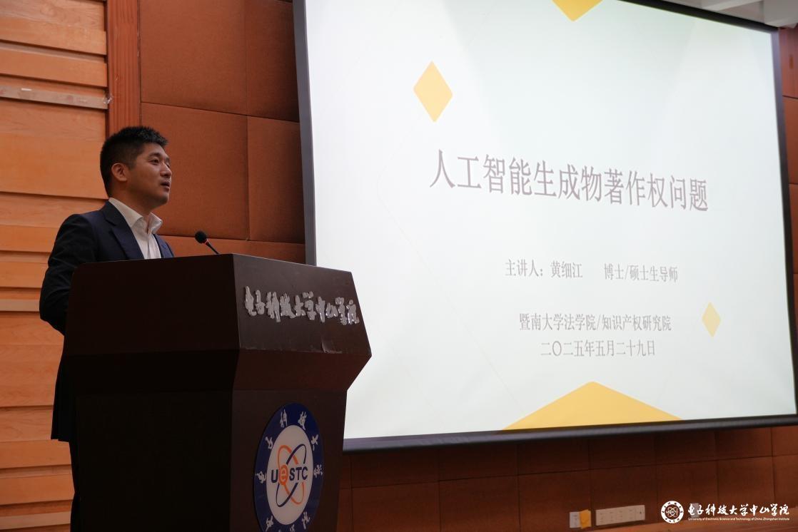本次讲座邀请暨南大学法学院、知识产权研究院黄细江博士担任主讲嘉宾。黄细江结合国内外典型案例,系统分析了AI生成内容的版权界定问题,重点探讨了用户提示词法律性质、AI内容可版权性认定及权利归属等核心议题,为师生提供了兼具理论深度和实践价值的学术指导。