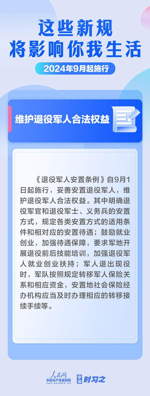 维护退役军人合法权益;规范慈善活动运行;规制线上消费中侵害消费者权益的焦点问题……9月起,这些新规施行,将影响你我生活。